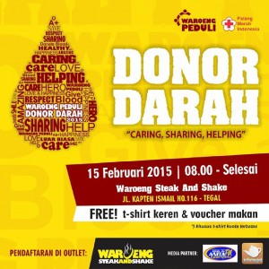 DONOR DARAH 2015 @waroengsteak. Jl. Kapt. Ismail no. 116 | minggu, 15 feb | start 08:00 – end | free tshirt & voucher. Datang dan ramaikan yuk.
